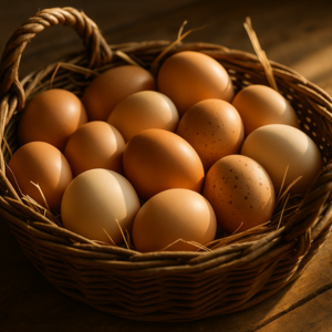 Compared to commercial eggs, they have less cholesterol and fat but more Omega-3 for heart and brain health.
